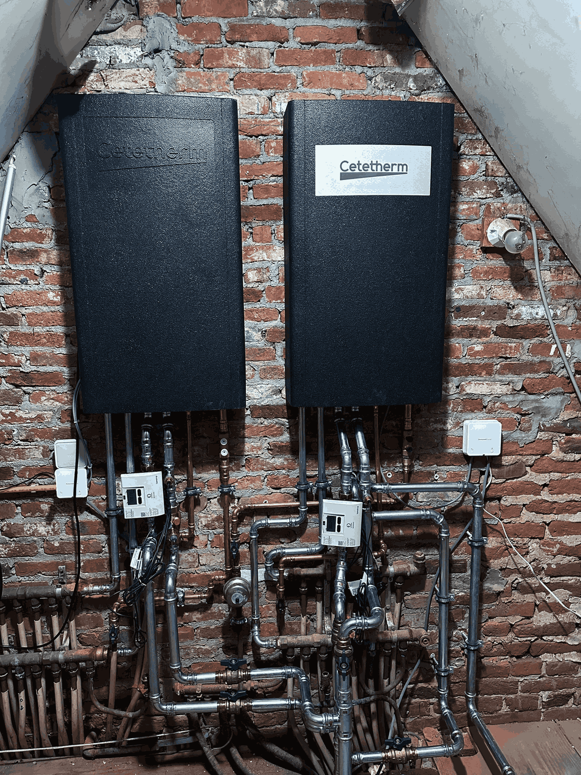 Bij elke deelnemende woning hebben we de bestaande aardgasketel vervangen door een Cetetherm afnamestation. Voor woningen zonder bestaande centrale verwarmingsinstallatie werden Jaga ventiloconvectoren geplaatst. Deze kunnen naast verwarmen ook gebruikt worden om te ventileren in de zomermaanden.